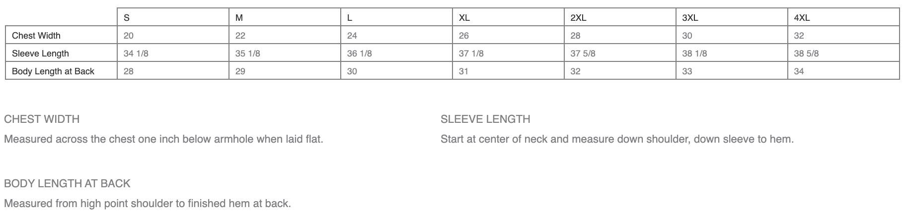 SIZE CHART